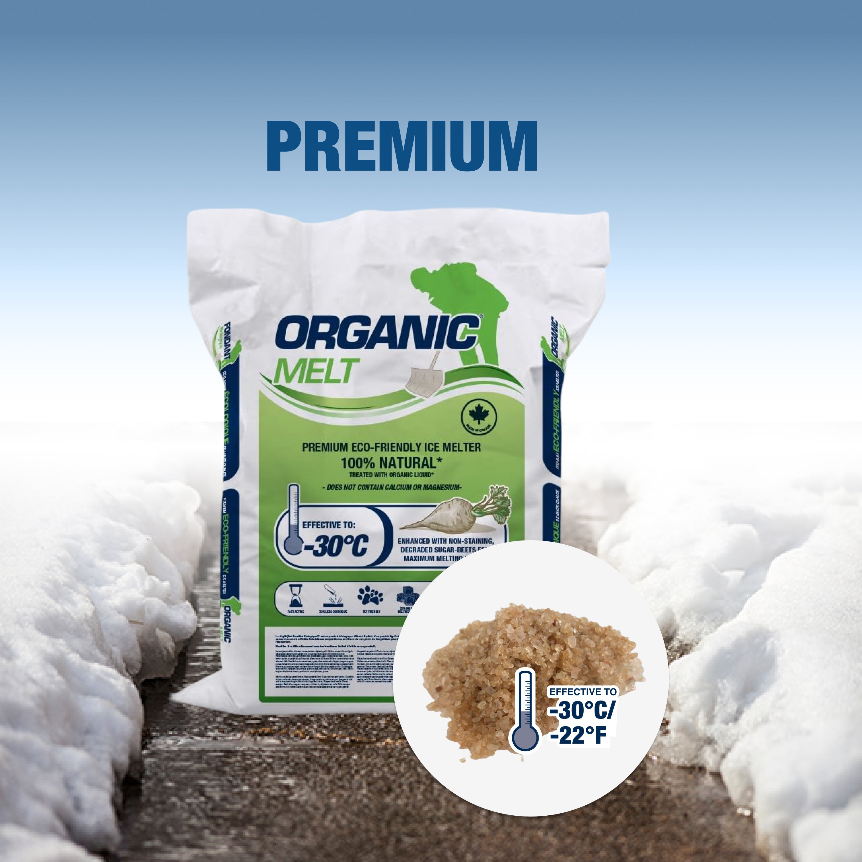 Purchase PremiumOur Premium Ice Melter uses a fine potash salt blended with our organic sugar beet based additive. This product delivers exceptional performance without needing to overapply. Perfect for the home, the office, or anywhere with snow & ice. Premium is perfect for walkways, driveways and high importance areas.