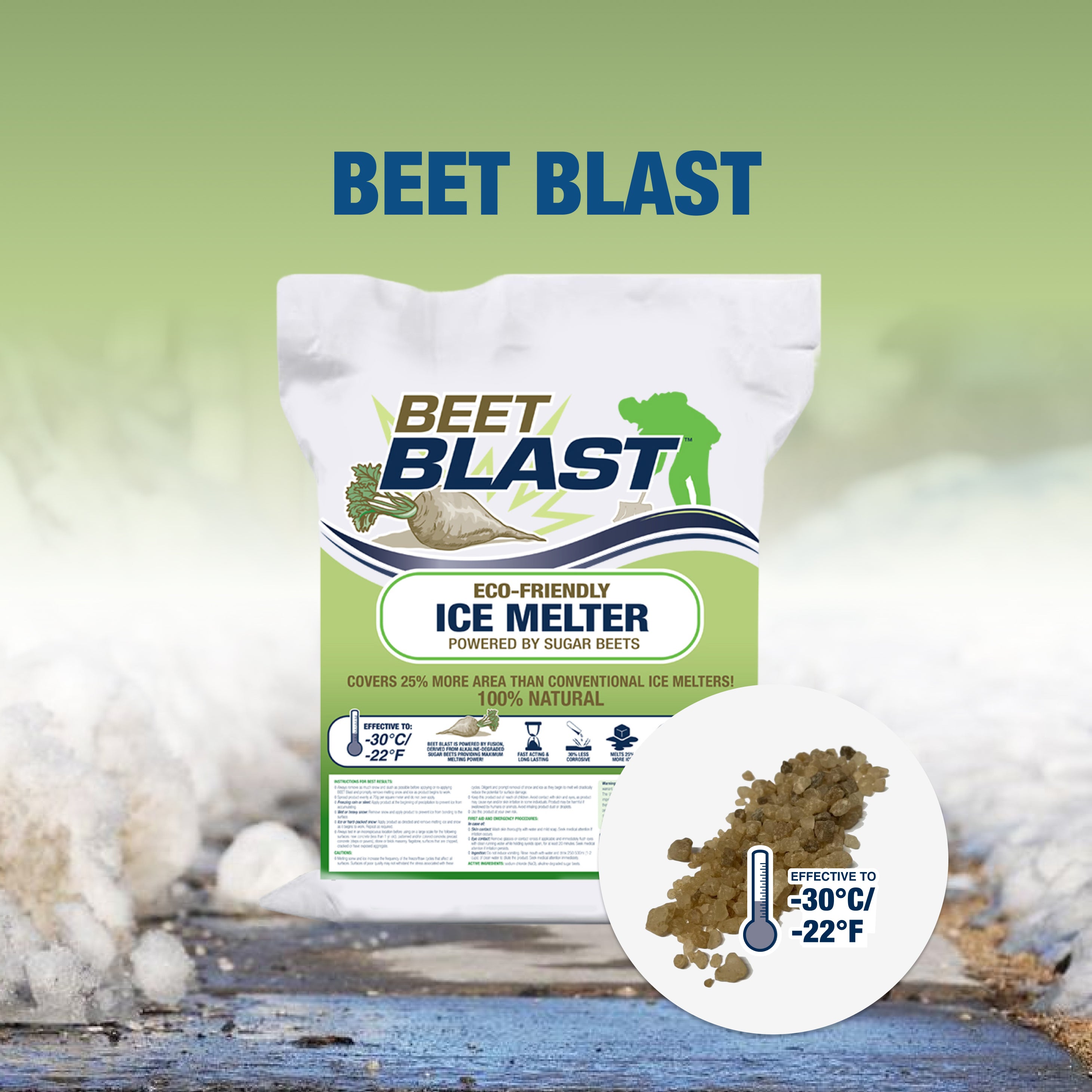 Buy Beet BlastOur granular Beet Blast uses standard rock salt blended with our organic sugar beet additive. This additive allows Beet Blast to work in extreme cold, and still deliver effective results. Treated salt can reduce salt use by over 30%. Beet Blast is perfect for roadways, freezing rain or anywhere you need bulk application.